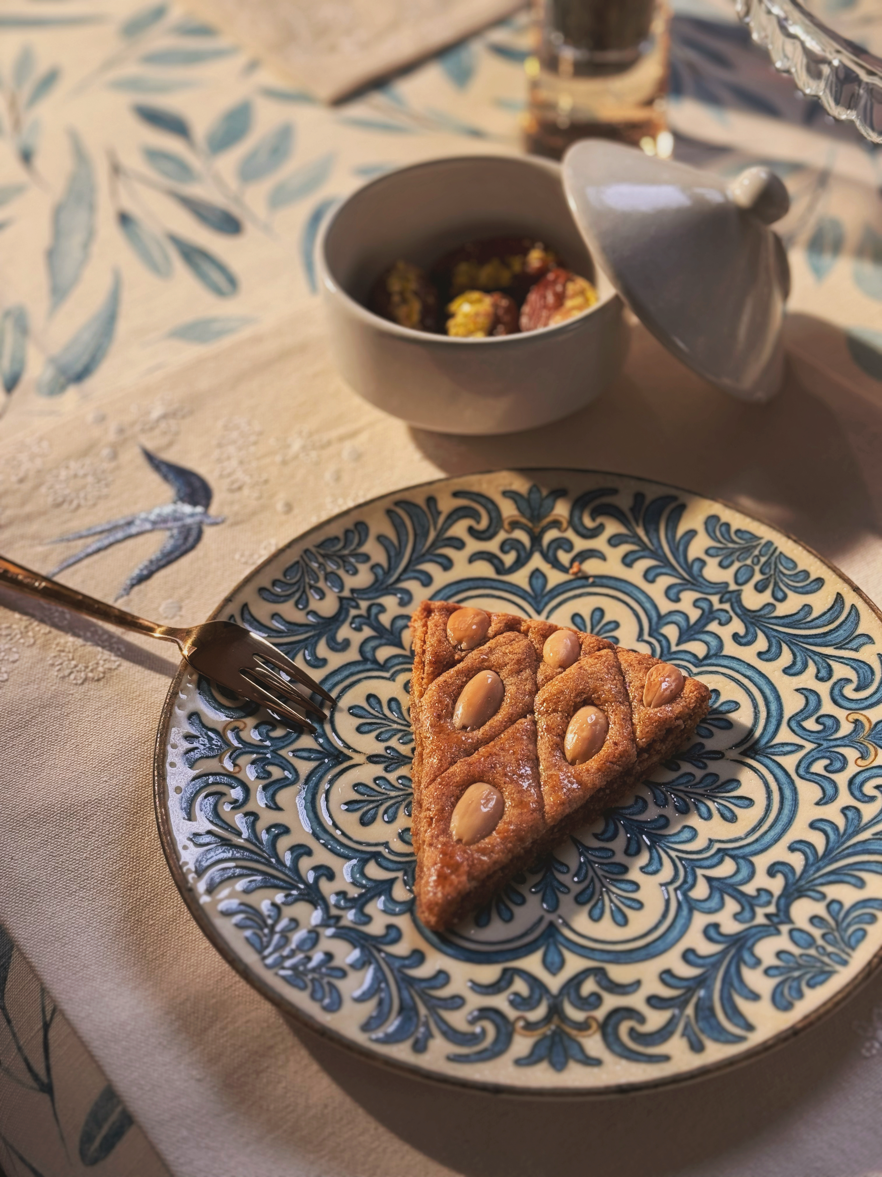 Clean plant-powered sticky Basboosa - free from gluten, dairy, refined sugar - made of almonds, coconut & drizzled in warm raw honey